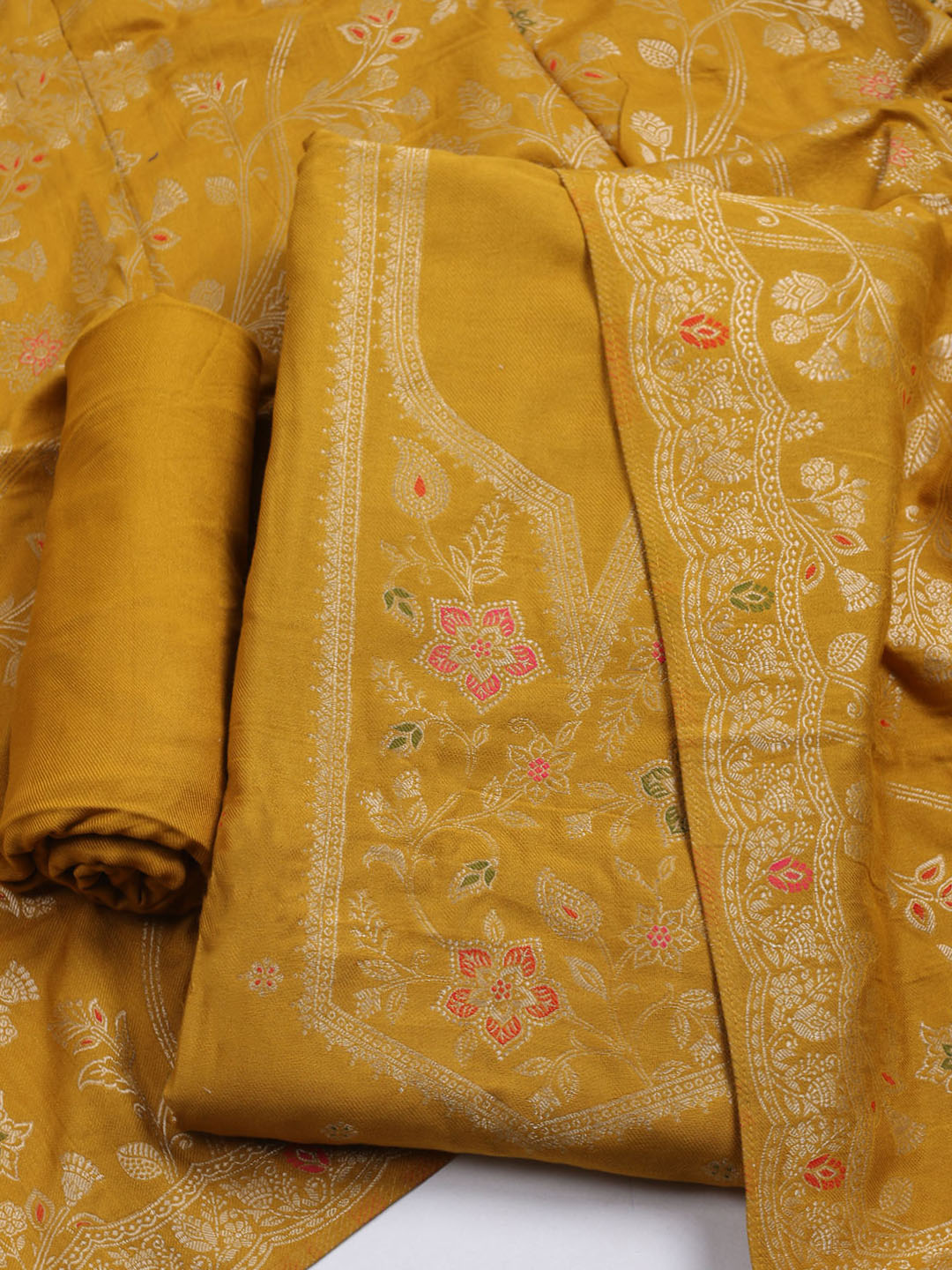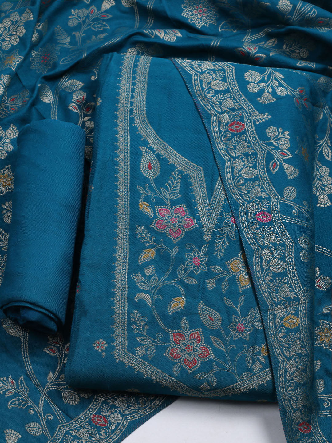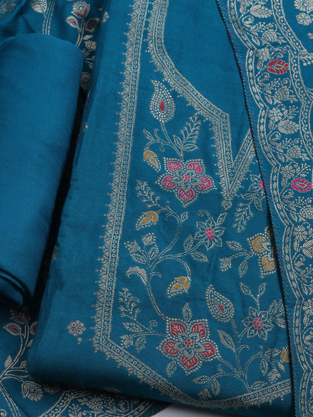 Pashmina Woven Design Unstitched Kurta With Pant & Dupatta