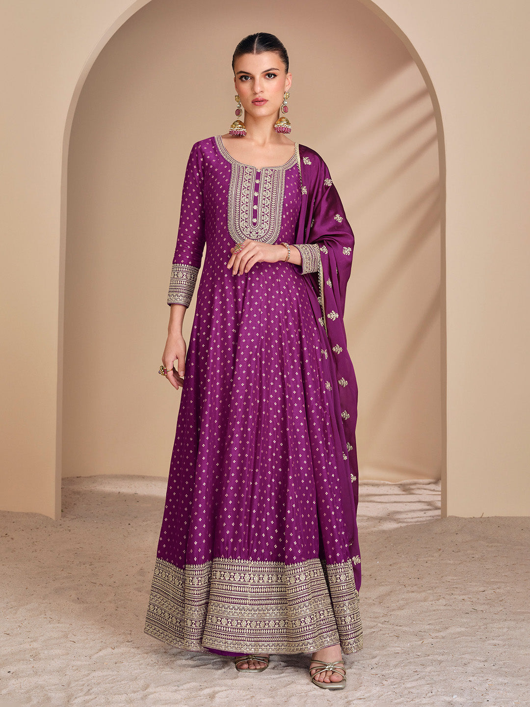 Embroidered Art Silk Suit With Pant & Dupatta