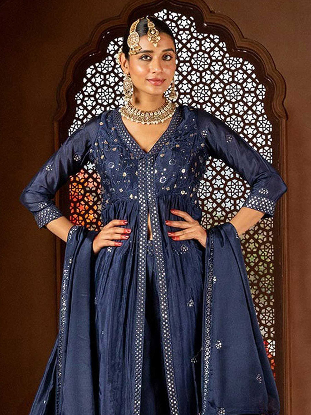 Intricate Embroidery Chinon Suit With Pant & Dupatta