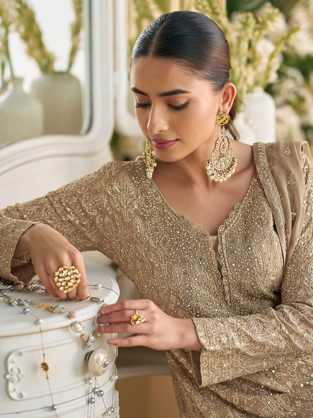 Embroidered Georgette Suit With Pant & Dupatta