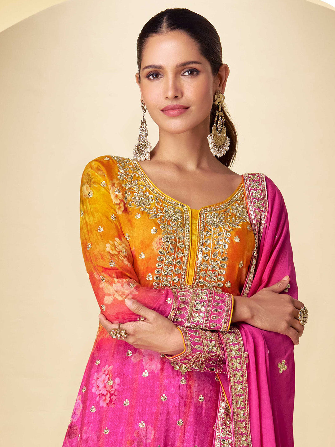 Embroidered Chinon Silk Kurti With Sharara & Dupatta