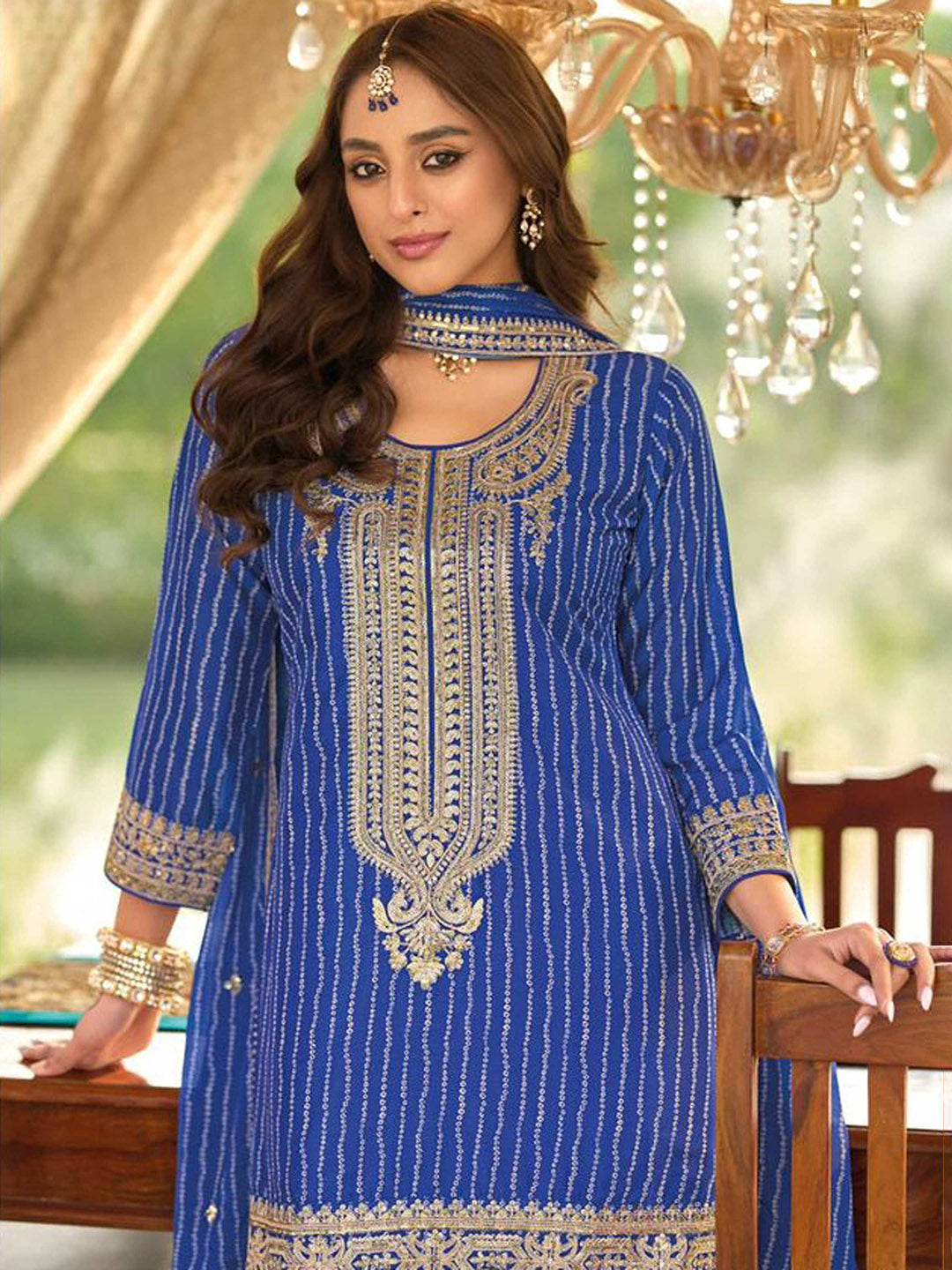 Embroidered Chinon Kurti With Gharara & Dupatta