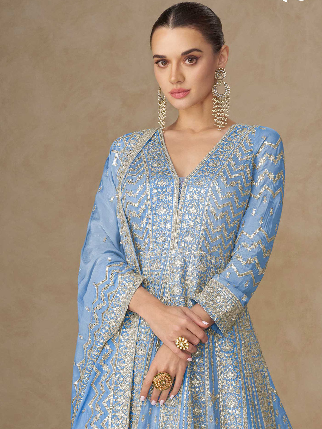 Embroidered Chinon Suit With Pant & Dupatta