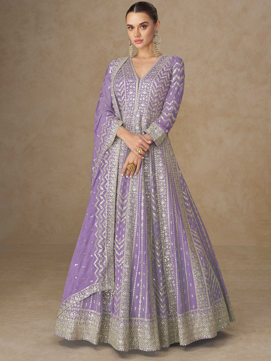 Embroidered Chinon Suit With Pant & Dupatta