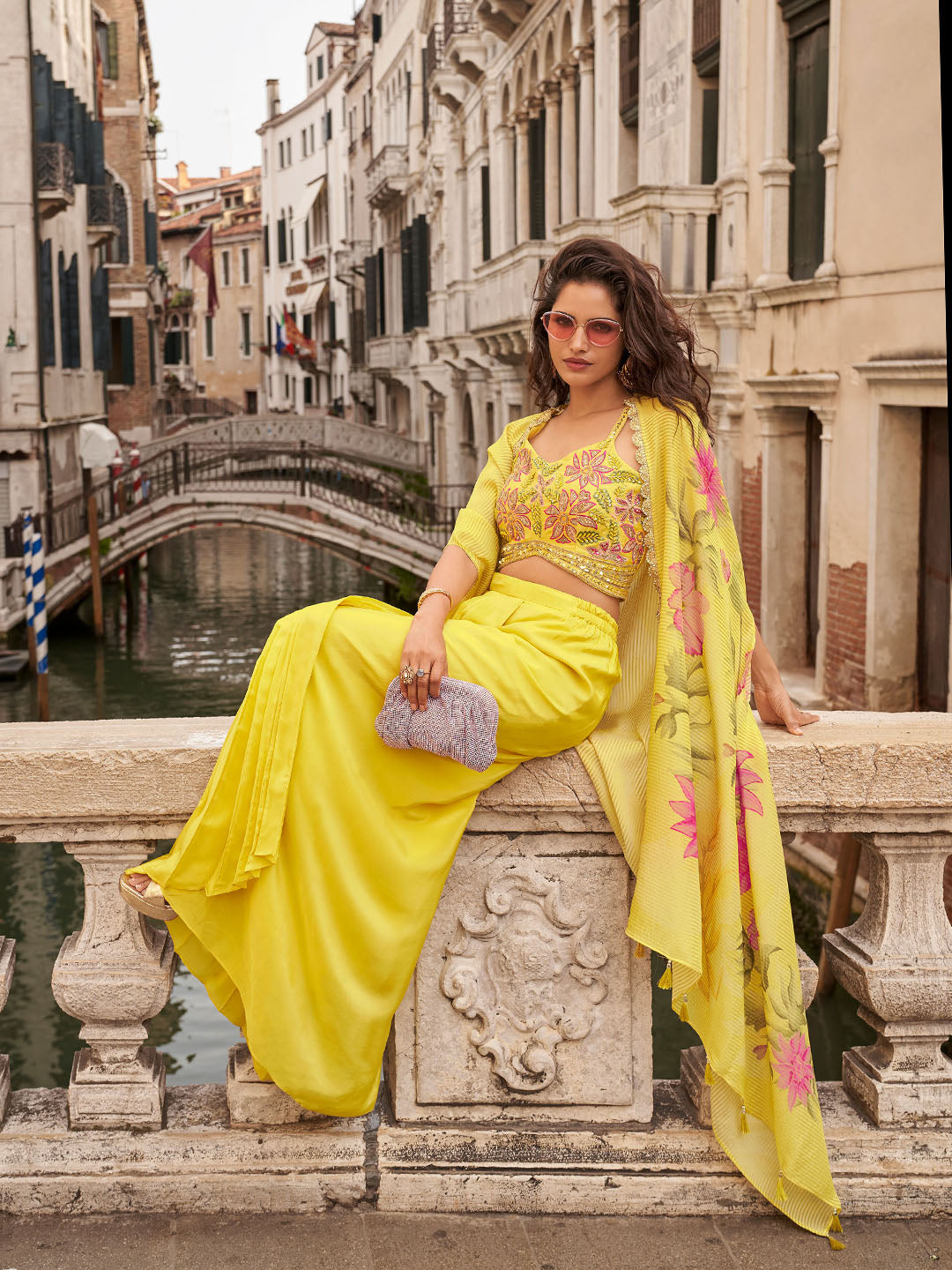 Embroidered Chinon Choli With Plazzo & Jacket