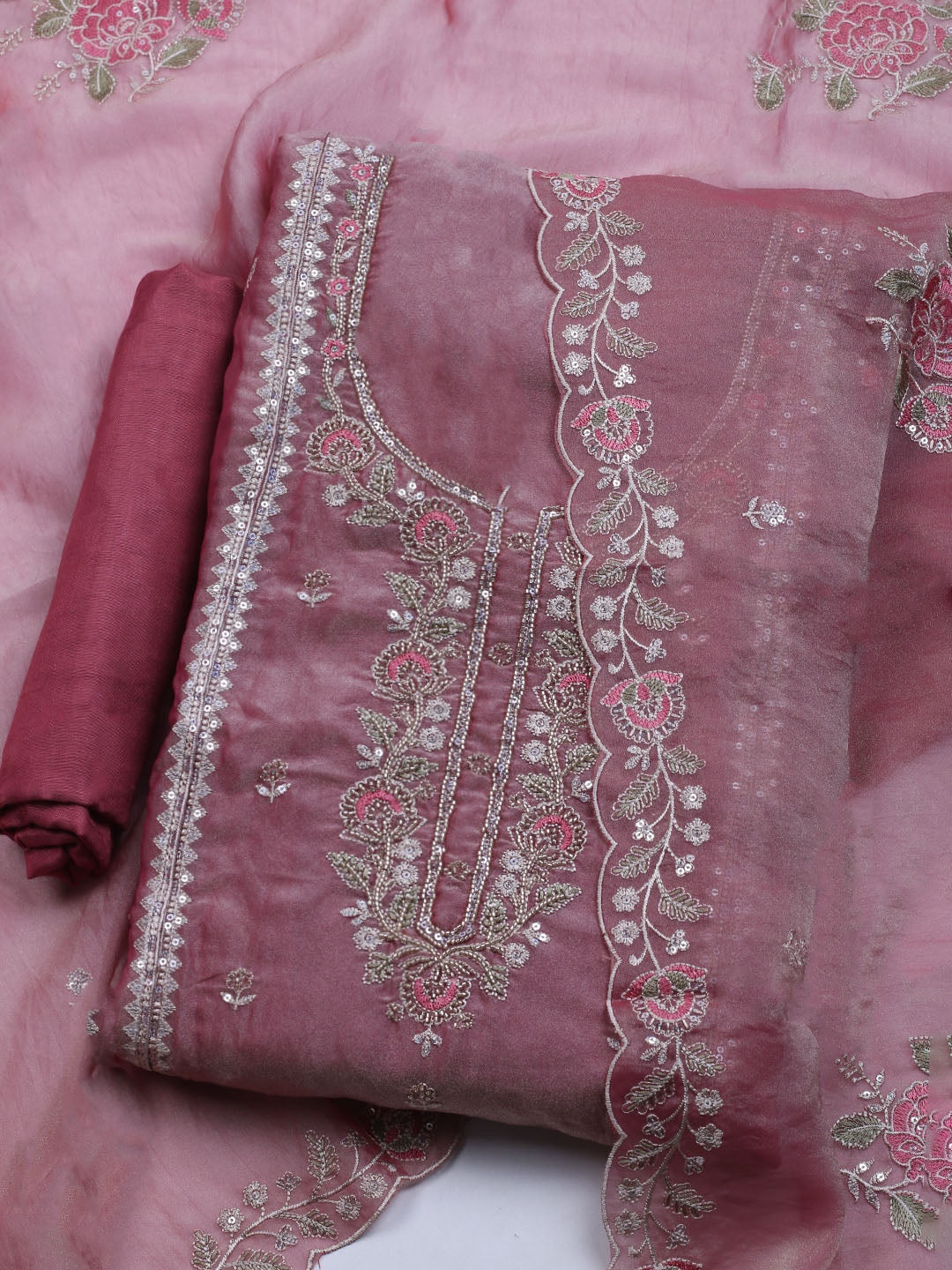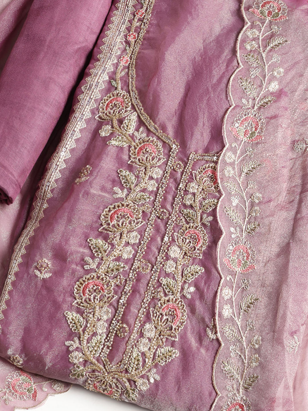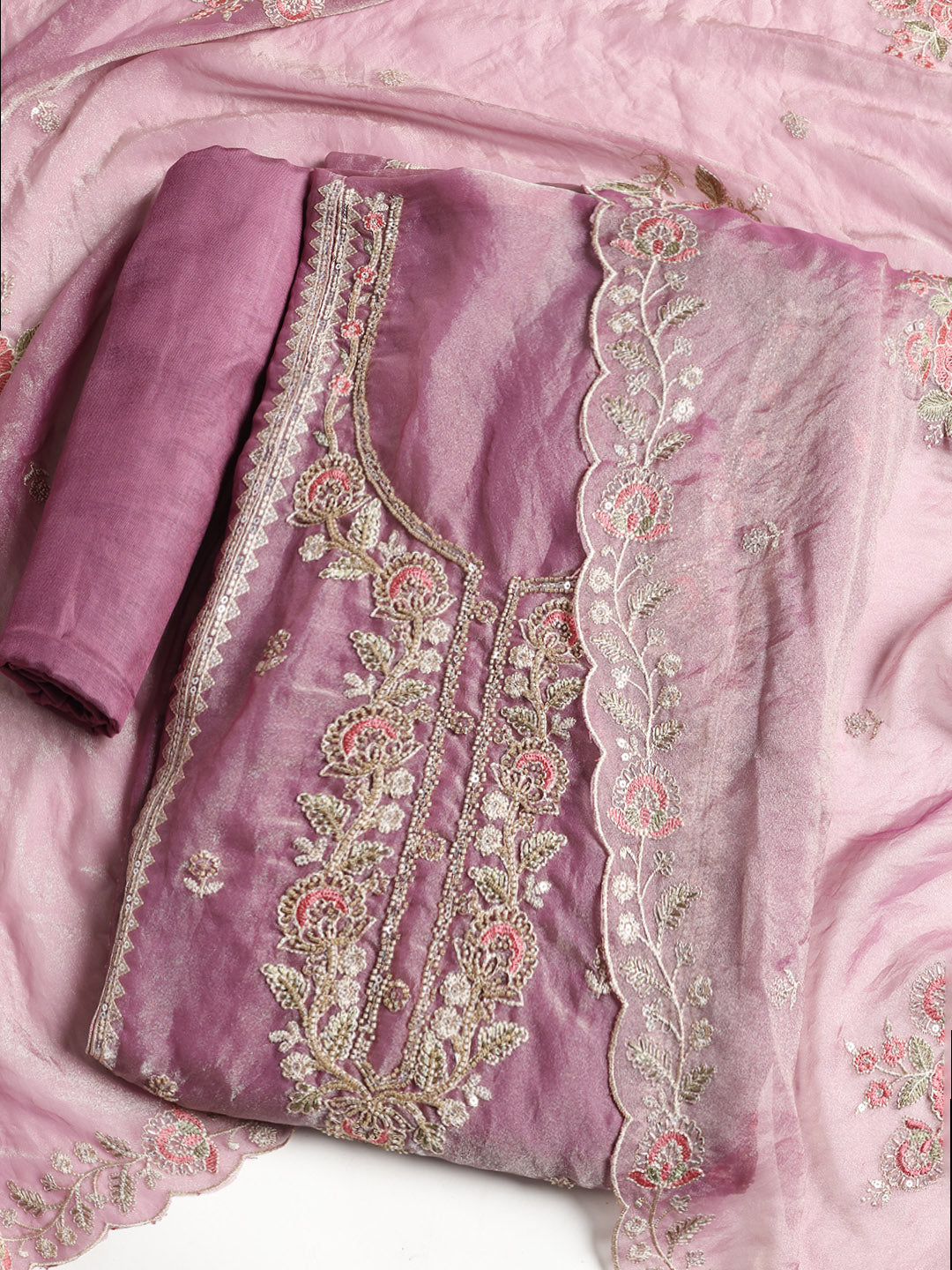 Embroidered Tissue Unstitched Suit With Dupatta