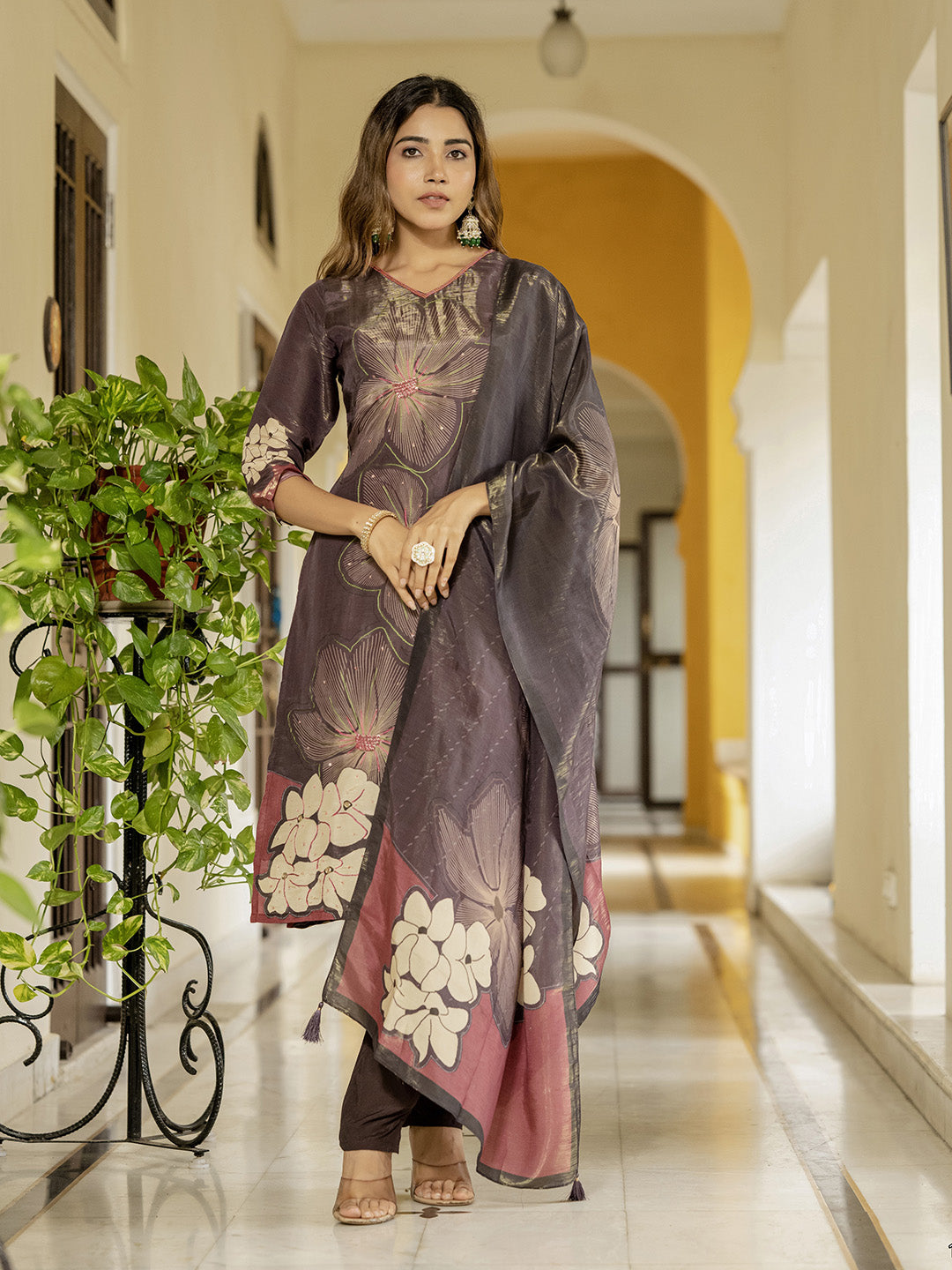 Embroidered Art Silk Kurta With Pant & Dupatta