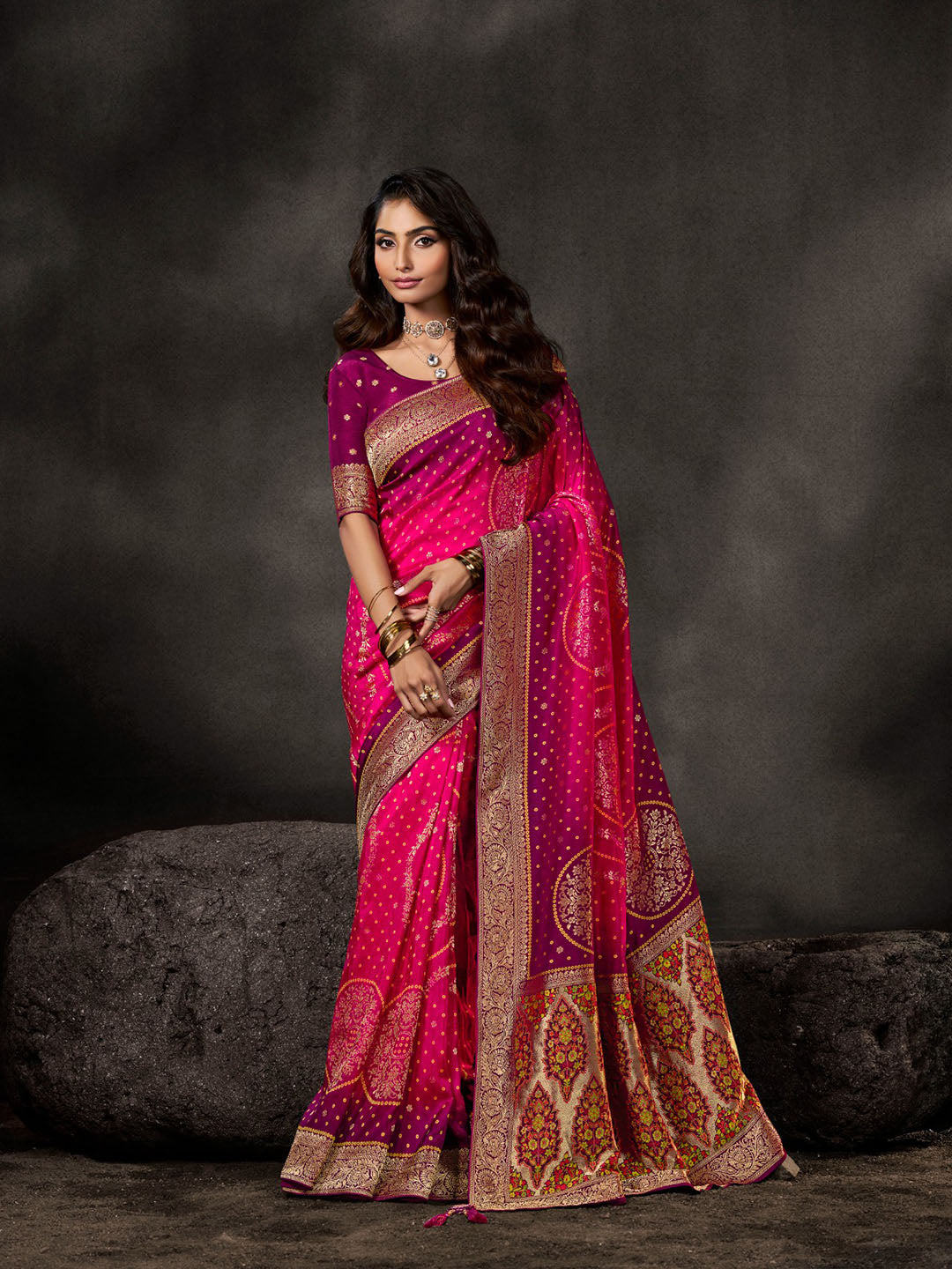 Note: The blouse shown in the pictures is just for Photoshoot purposes. The blouse you will get will be an attached running blouse.