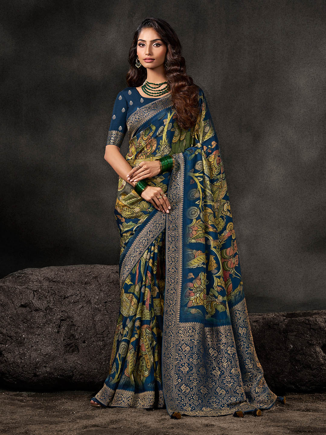 Note: The blouse shown in the pictures is just for Photoshoot purposes. The blouse you will get will be an attached running blouse.