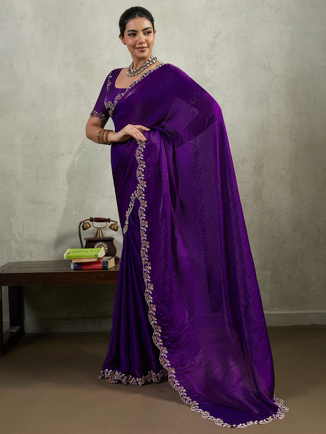 SKU: AW25-J-89-EX-ELARIS-104001-SAT-EMB-PURPLE-5.40-MTR