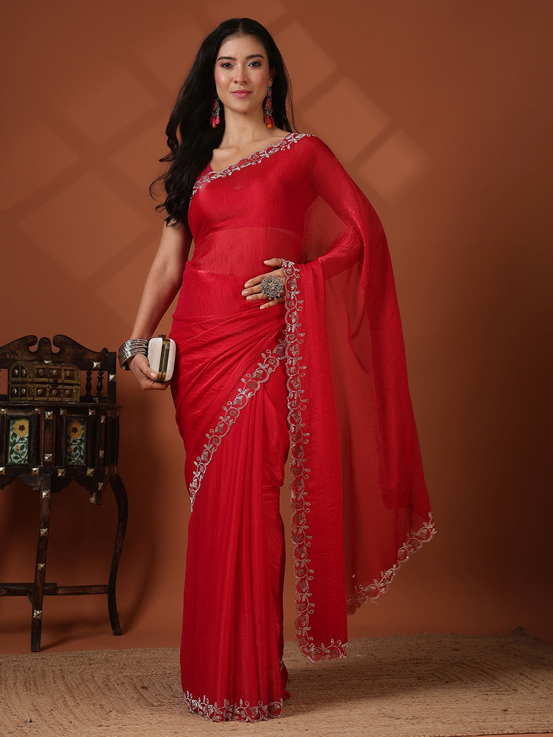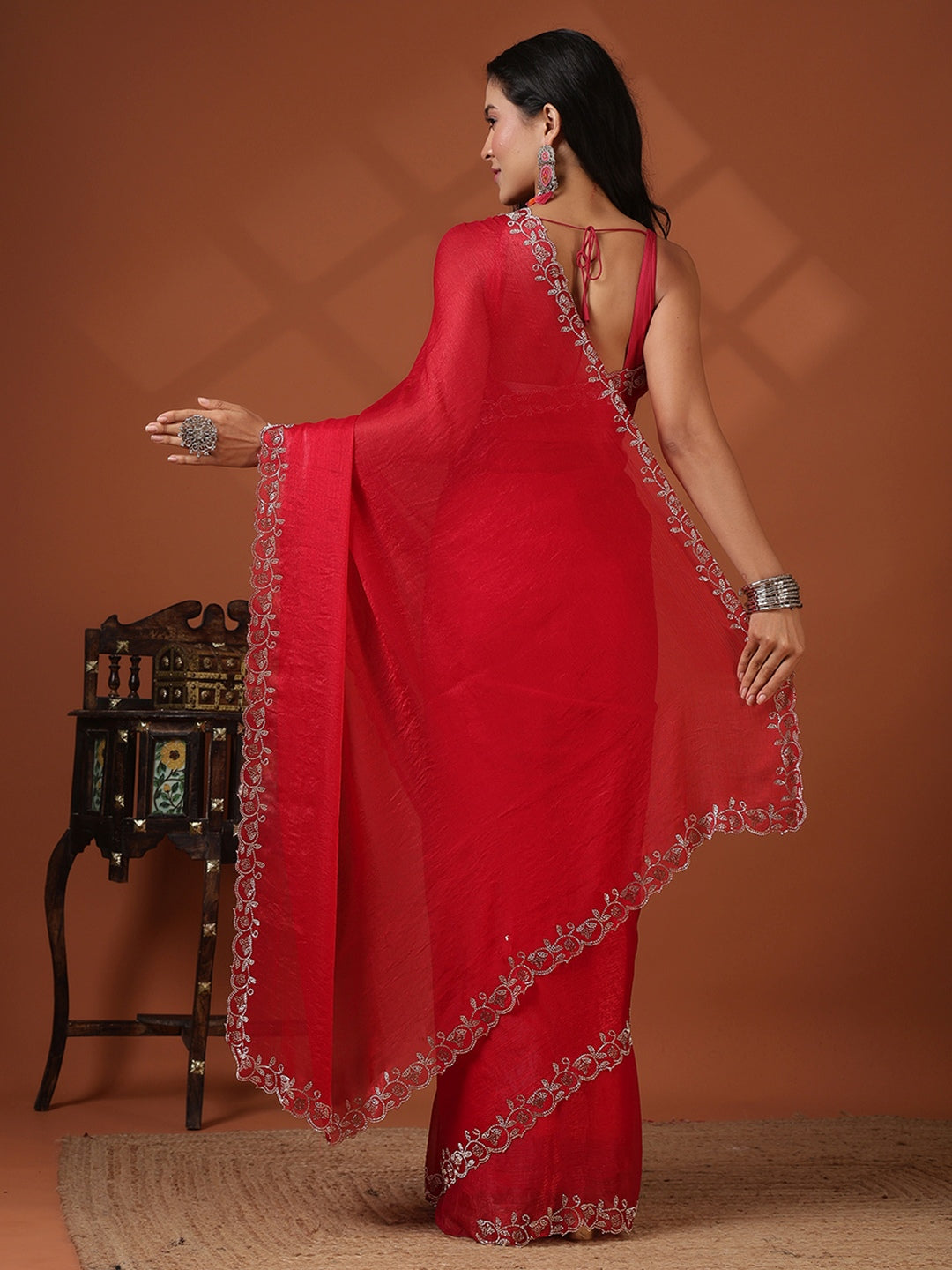Note: The blouse shown in the pictures is just for Photoshoot purposes. The blouse you will get will be an attached running blouse.