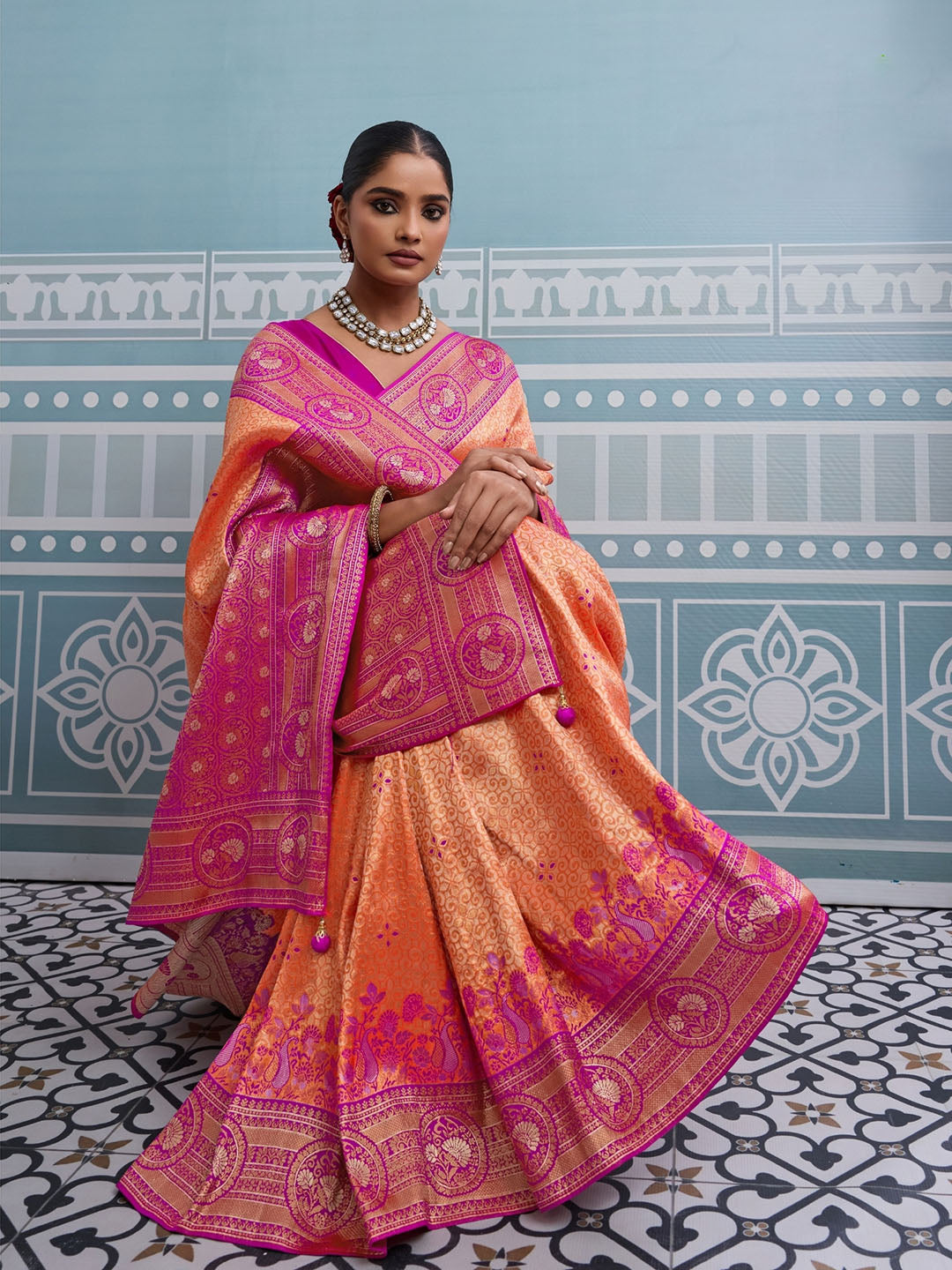 Note: The blouse shown in the pictures is just for Photoshoot purposes. The blouse you will get will be an attached running blouse.