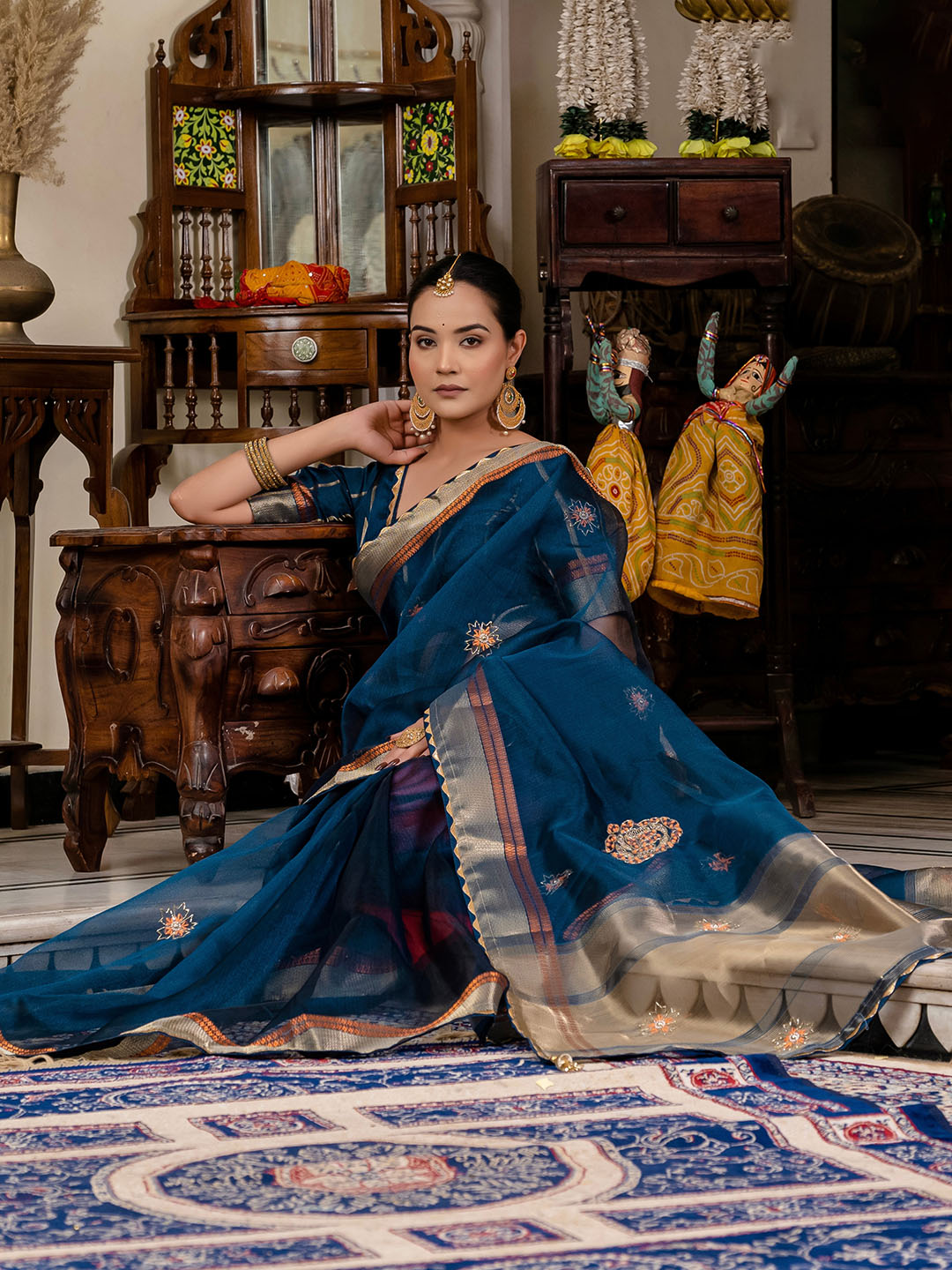Note: The blouse shown in the pictures is just for Photoshoot purposes. The blouse you will get will be an attached running blouse.