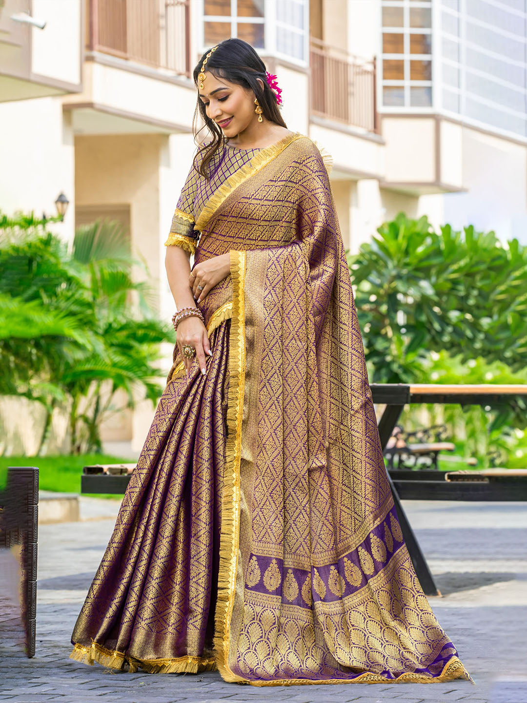Note: The blouse shown in the pictures is just for Photoshoot purposes. The blouse you will get will be an attached running blouse.