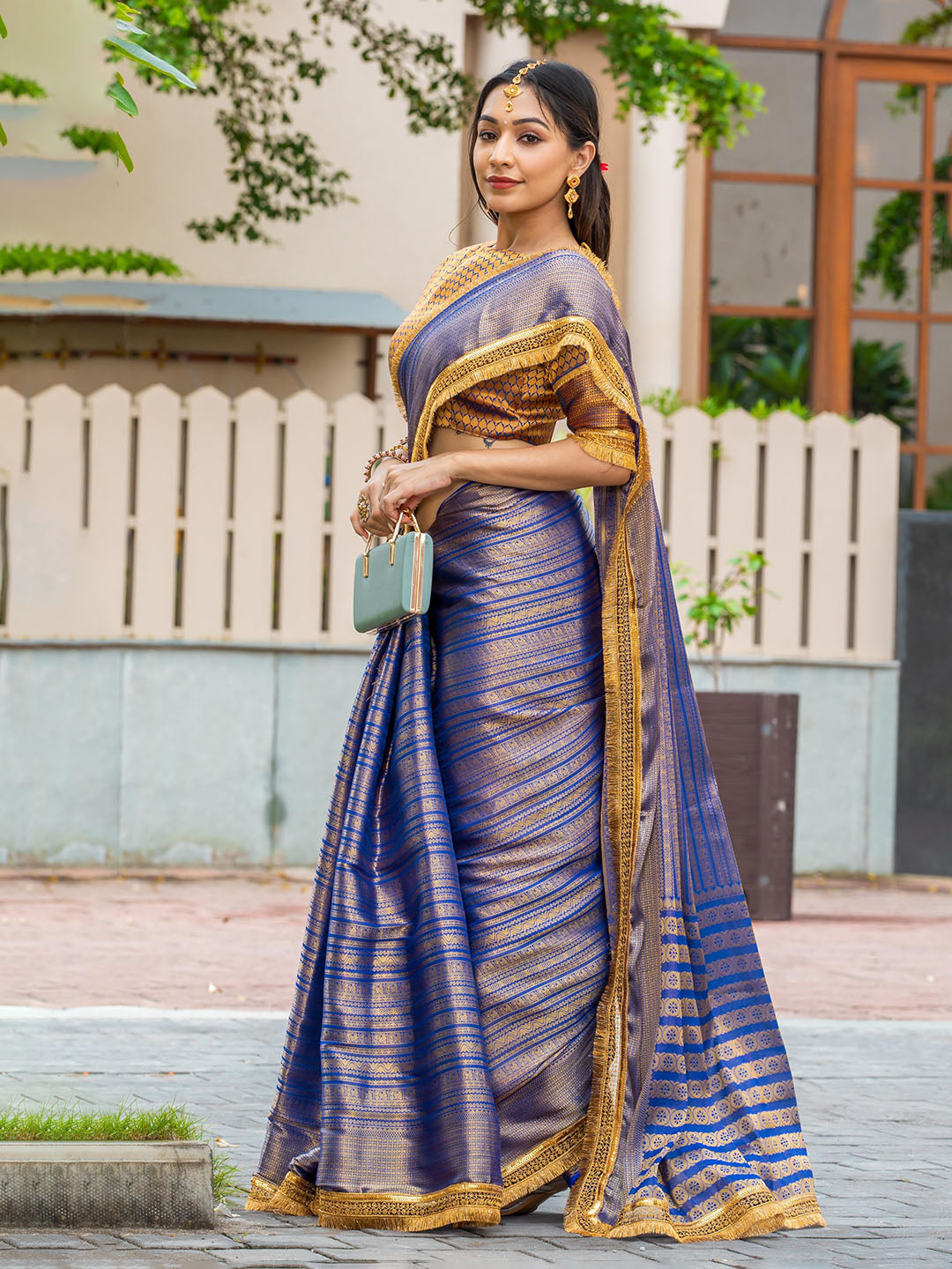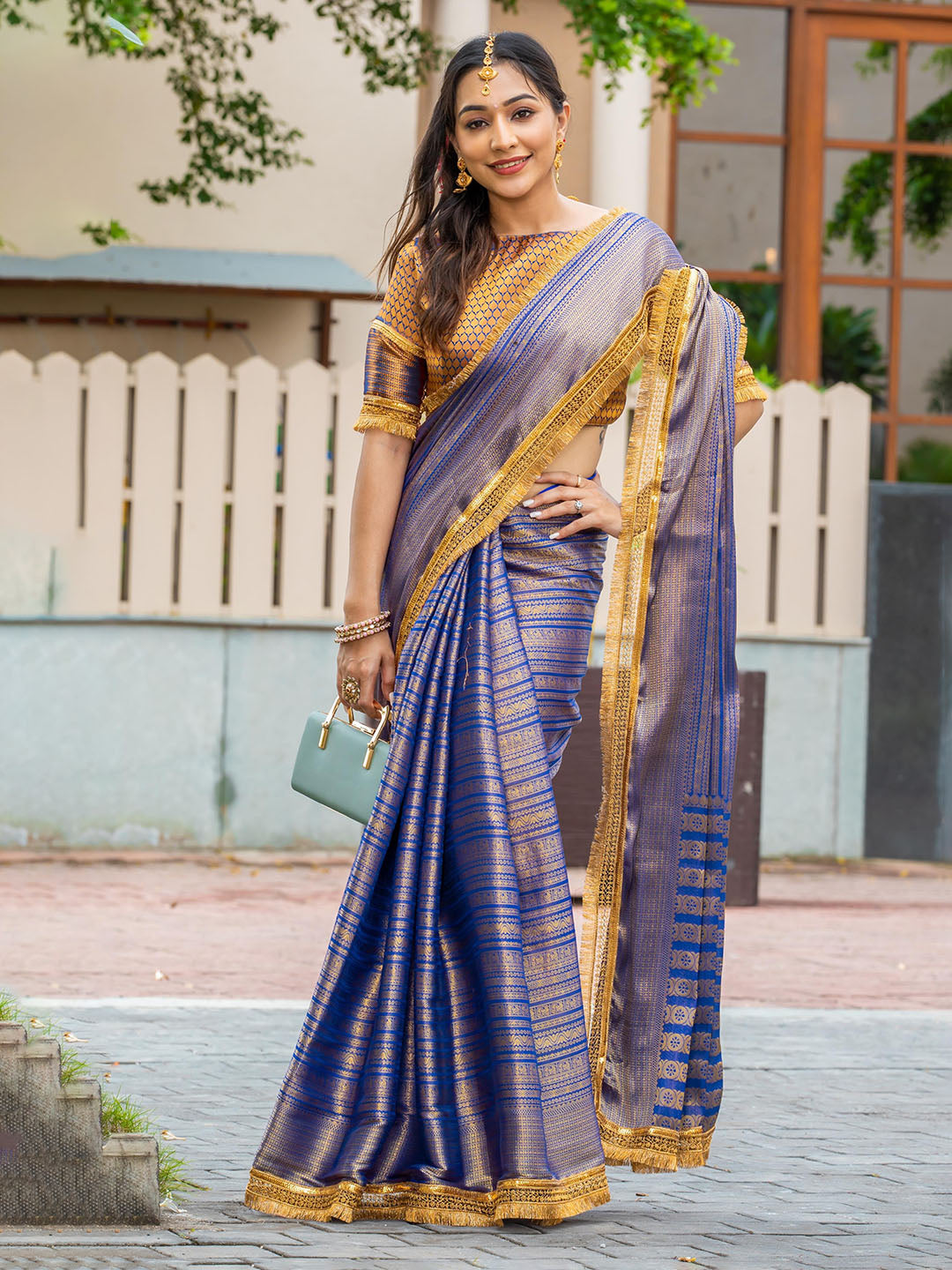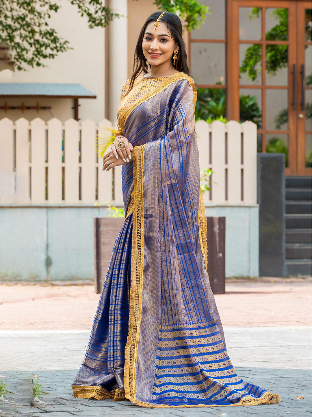 Note: The blouse shown in the pictures is just for Photoshoot purposes. The blouse you will get will be an attached running blouse.