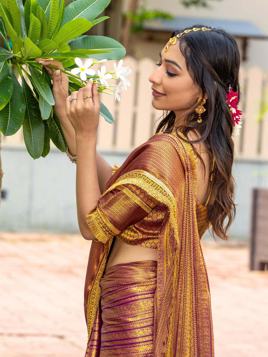 Note: The blouse shown in the pictures is just for Photoshoot purposes. The blouse you will get will be an attached running blouse.