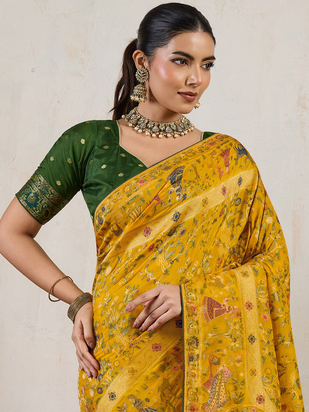 Note: The blouse shown in the pictures is just for Photoshoot purposes. The blouse you will get will be an attached running blouse.