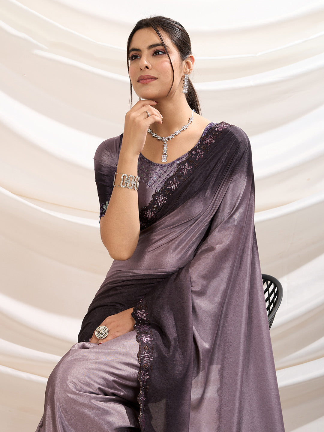 Embroidered Crepe Saree