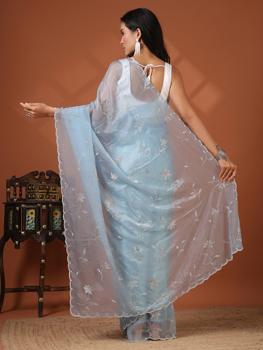 Note: The blouse shown in the pictures is just for Photoshoot purposes. The blouse you will get will be an attached running blouse.