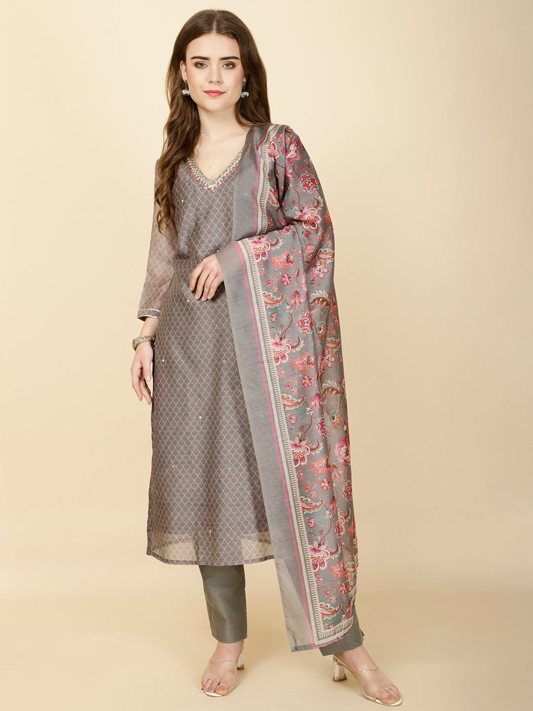 Abstract Print Chanderi Suit Set With Dupatta