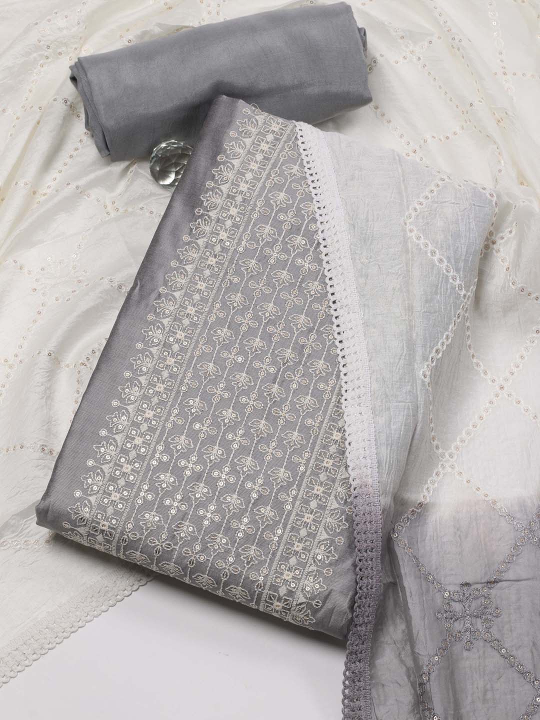 Panel Embroidery Chanderi Unstitched Suit Piece With Dupatta