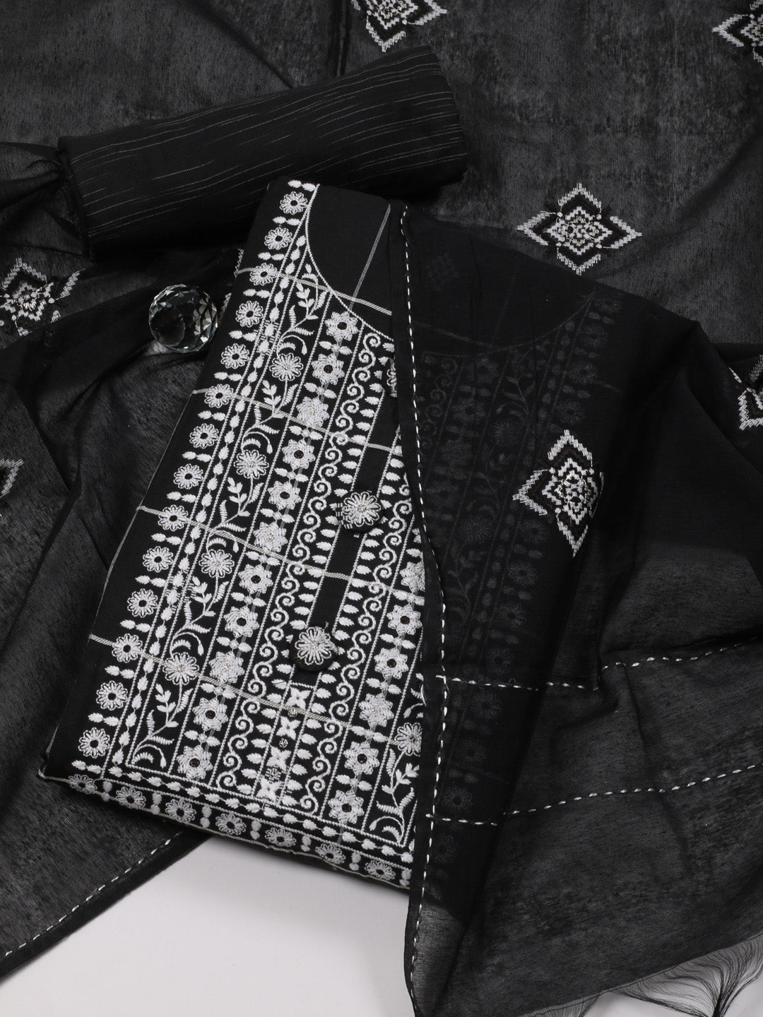 Neck Patti Cotton Unstitched Suit Piece With Dupatta