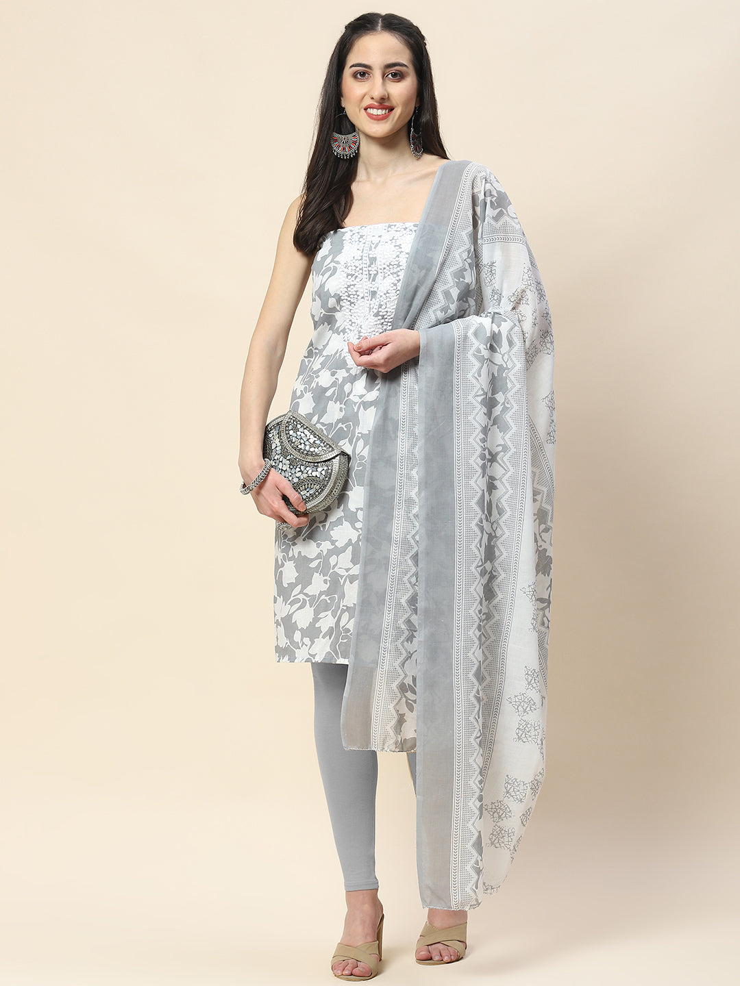 Chikan Print Cotton Unstitched Suit Piece With Dupatta