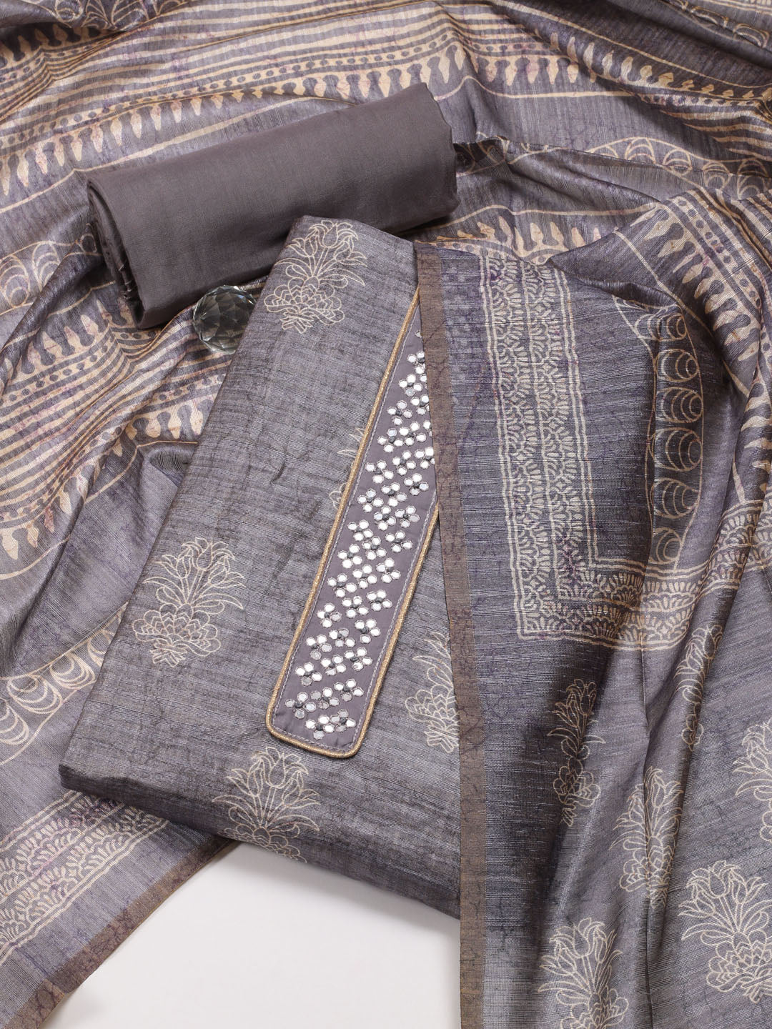 Neck Patti Embroidery Chanderi Unstitched Suit Piece With Dupatta