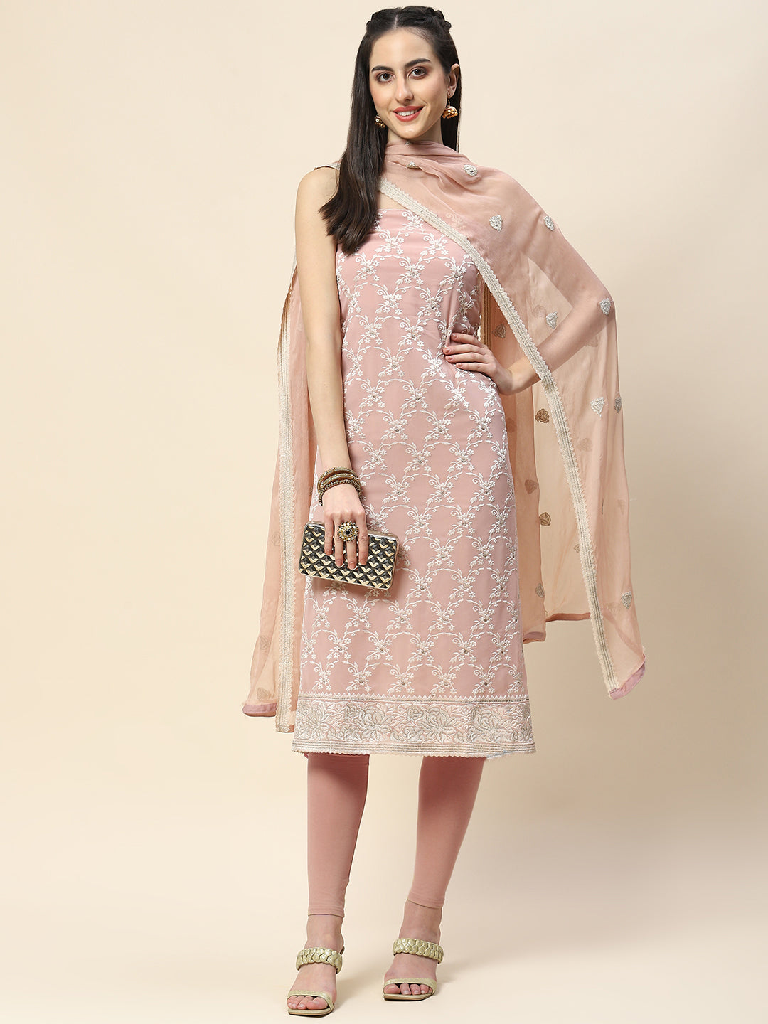All Over Embroidery Georgette Unstitched Suit Piece With Dupatta