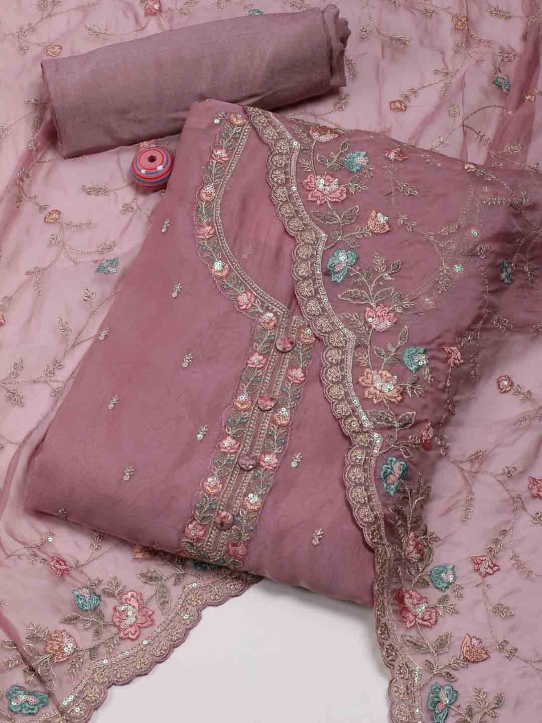 All Over Embroidery Organza Unstitched Suit Piece With Dupatta
