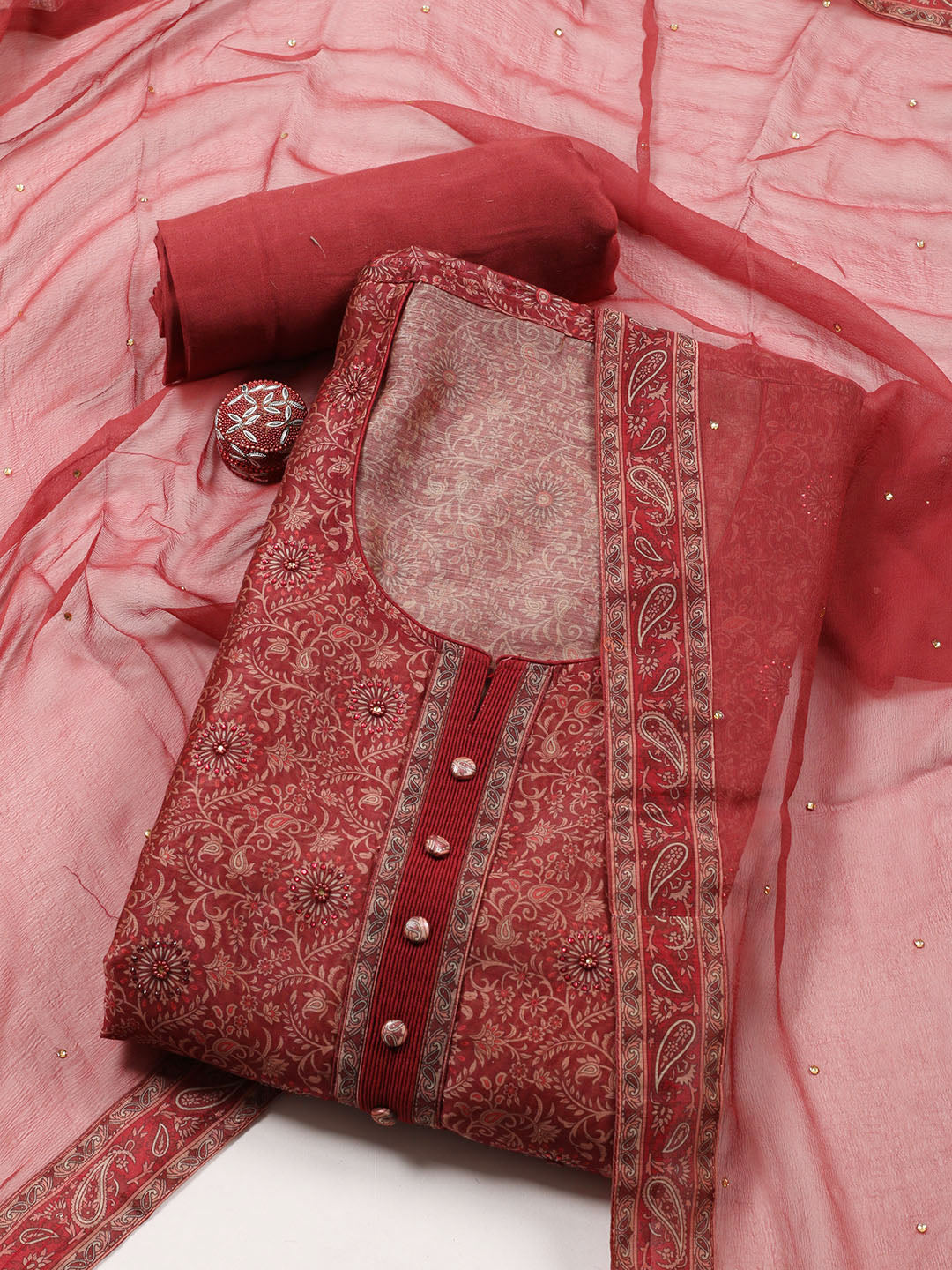 Neck Patti Chanderi Unstitched Suit Piece With Dupatta
