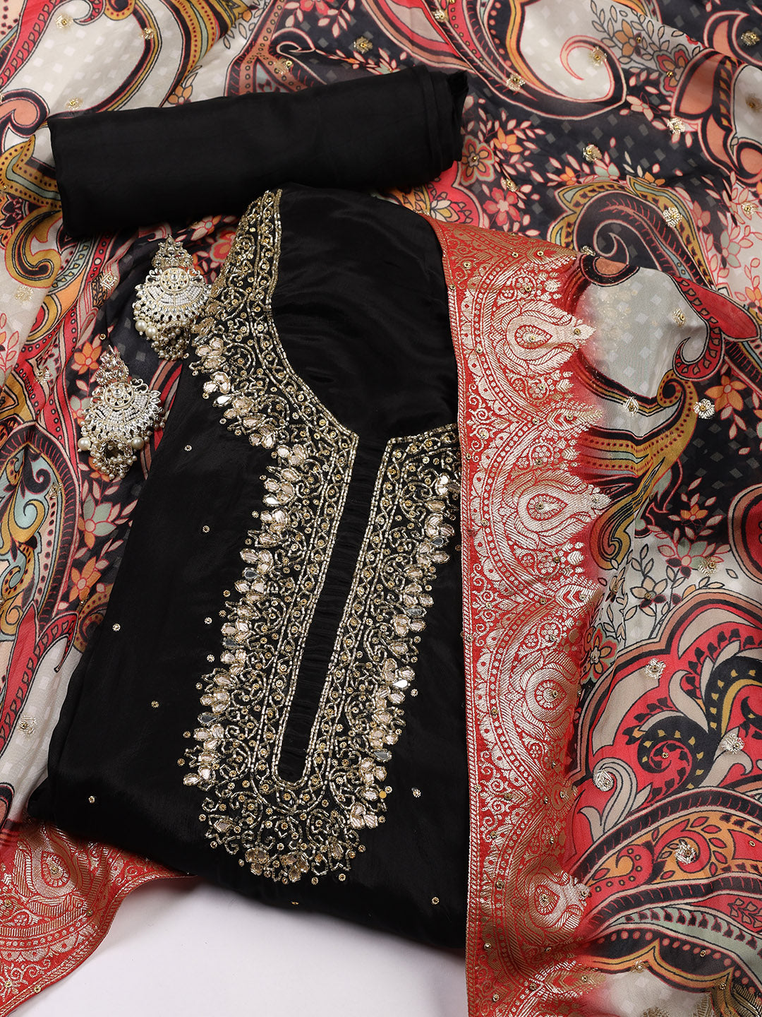 Neck Embroidered Organza Unstitched Suit With Dupatta