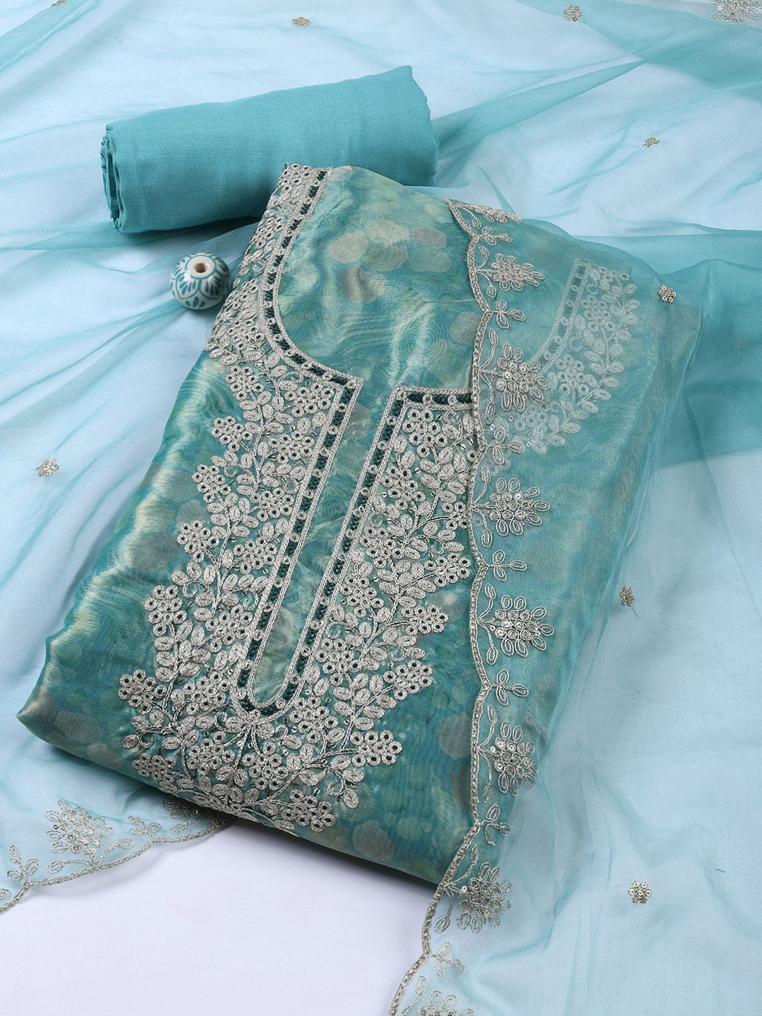 Neck Zari Embroidery Tissue Unstitched Suit With Dupatta