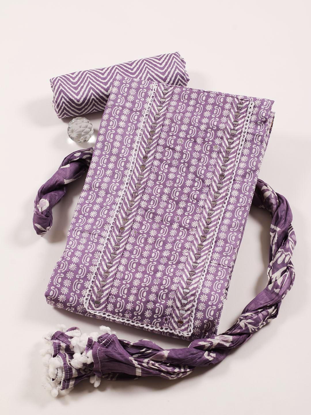 Neck Patti Cotton Blend Unstitched Suit With Dupatta
