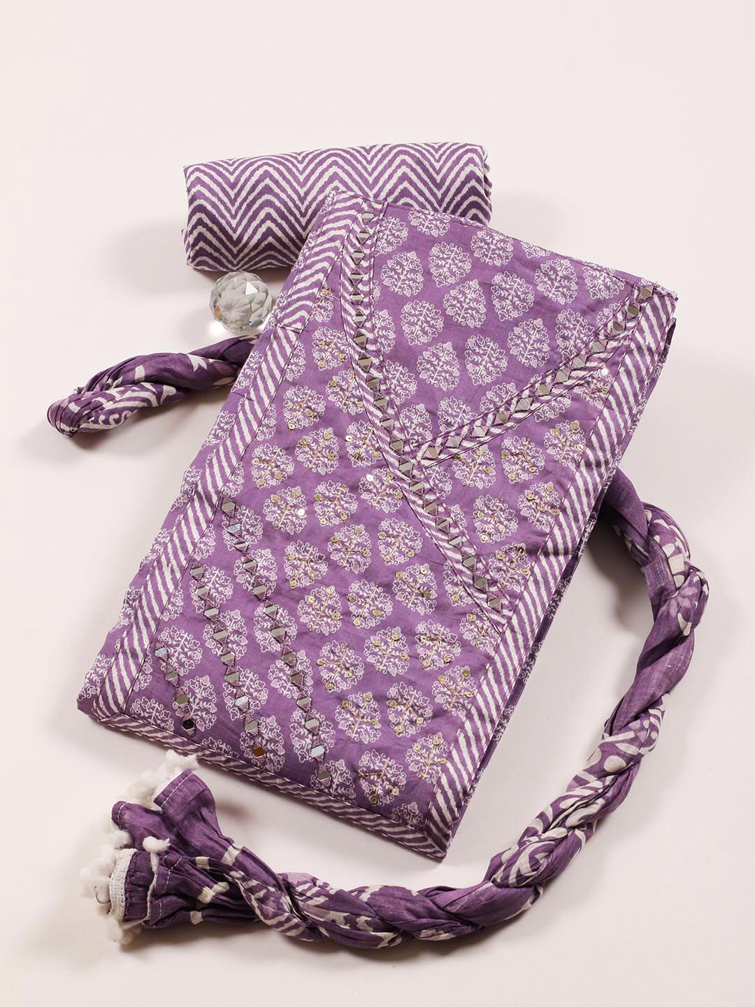 Printed Cotton Blend Unstitched Suit With Dupatta