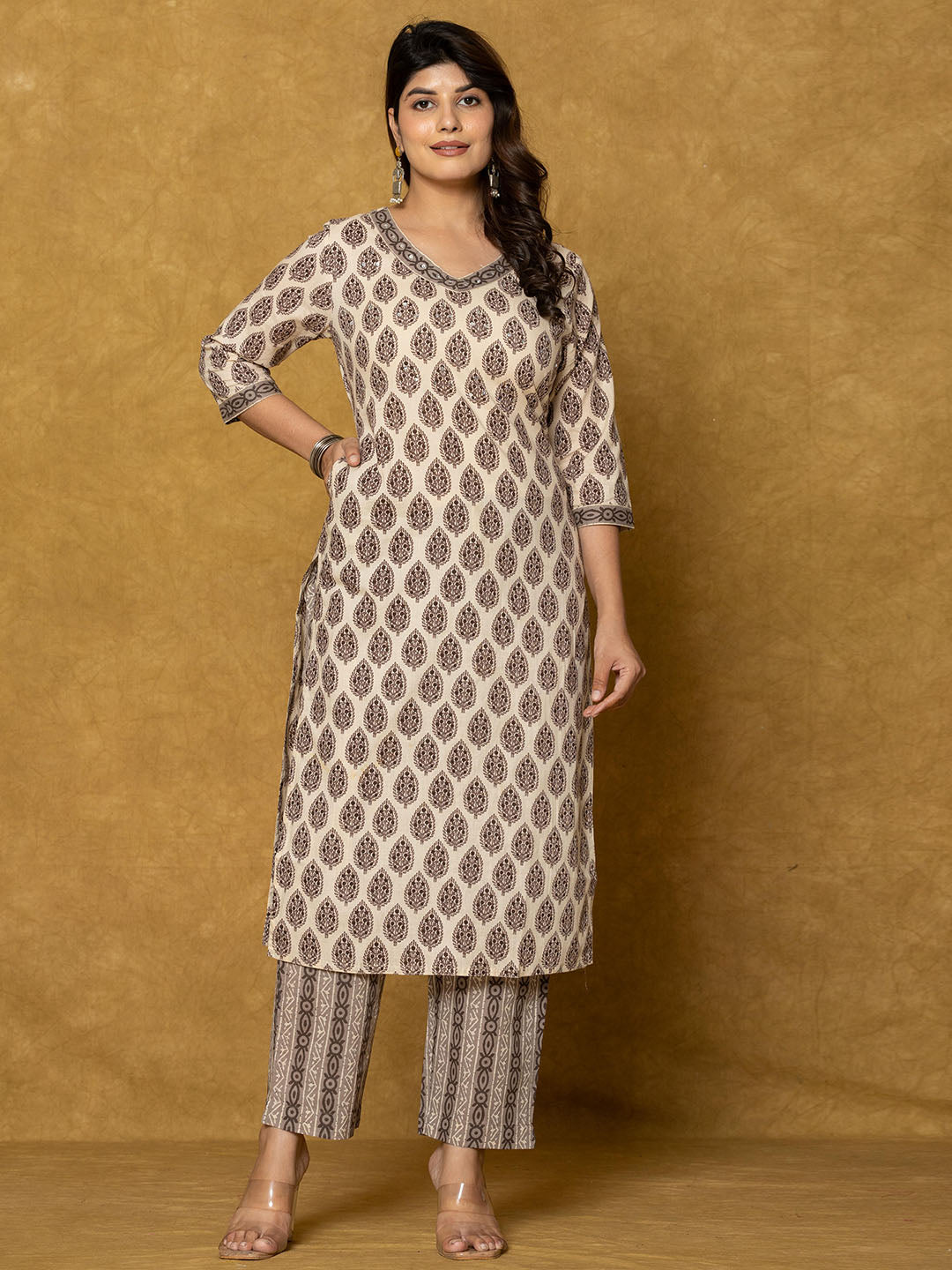 Printed Cotton Blend Kurta With Pants