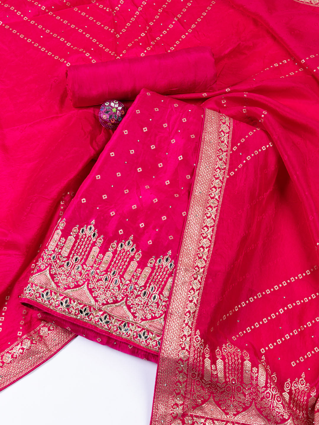 Booti Work Art Silk Unstitched Suit Piece With Dupatta