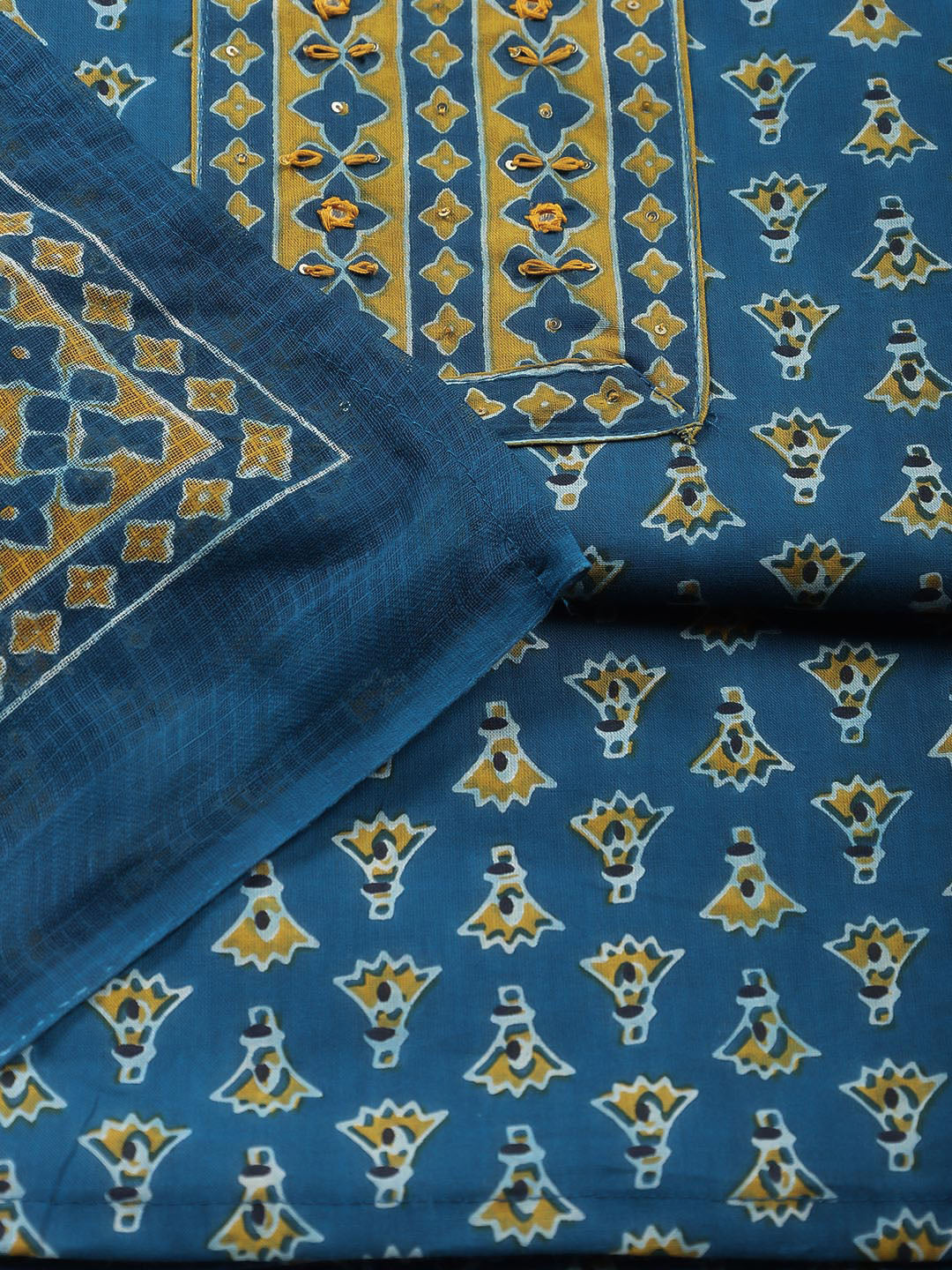 Printed Cotton Blend Unstitched Suit Piece With Dupatta