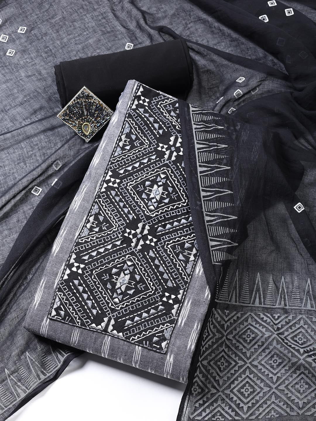 Printed Cotton Blend Unstitched Suit Piece With Dupatta