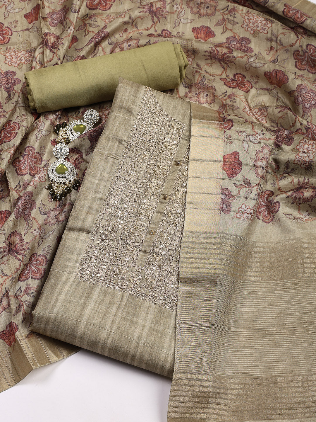 Neck Embroidered Tissue Unstitched Suit With Dupatta