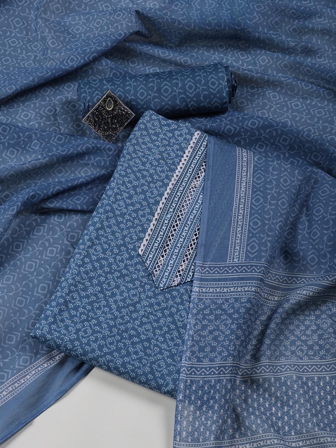 Floral Printed Cotton Blend Unstitched Suit Piece With Dupatta