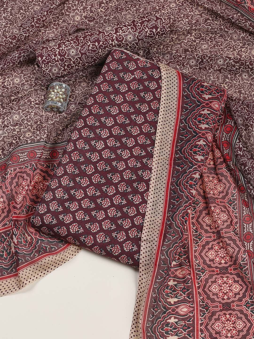 Printed Cotton Blend Unstitched Suit Piece With Dupatta