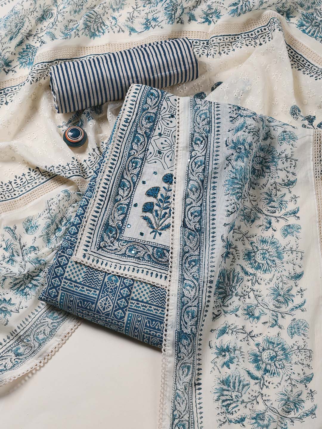 Schiffli Printed Cotton Blend Unstitched Suit Piece With Dupatta