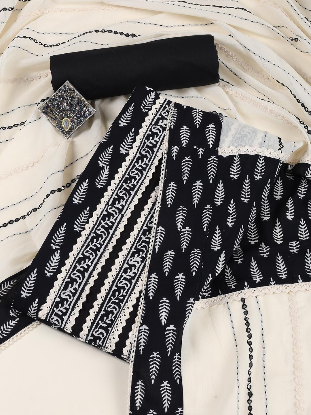Embroidered Cotton Blend Unstitched Suit Piece With Dupatta