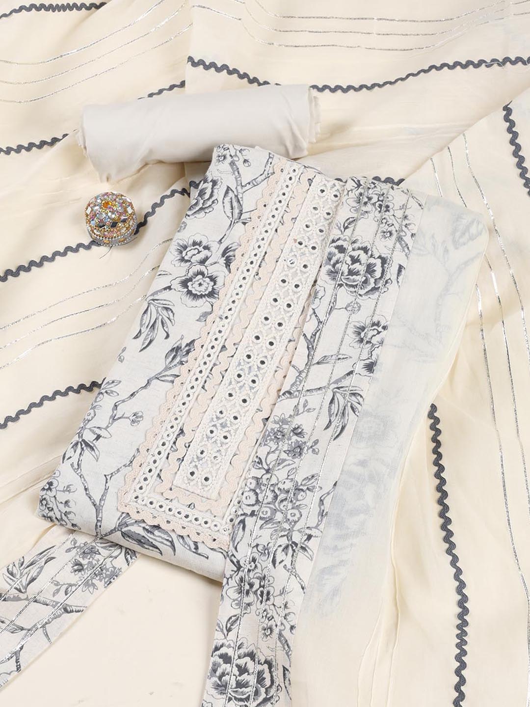 Embroidered Cotton Blend Unstitched Suit Piece With Dupatta