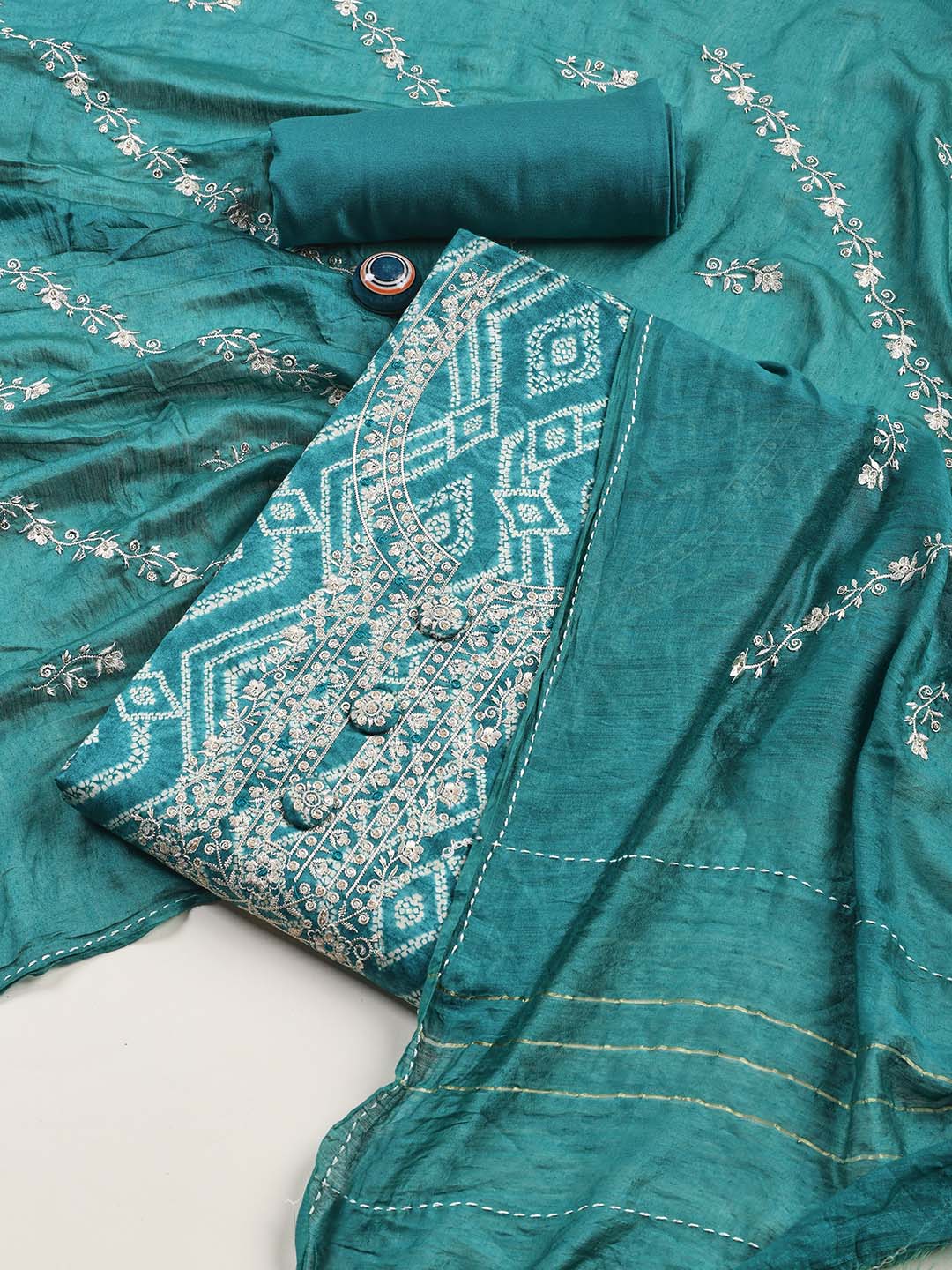 Neck Embroidery Cotton Blend Unstitched Suit Piece With Dupatta