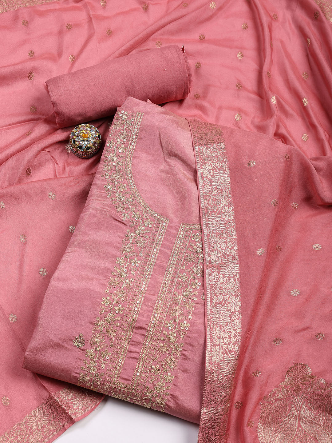 Neck Embroidered Chanderi Unstitched Suit With Dupatta