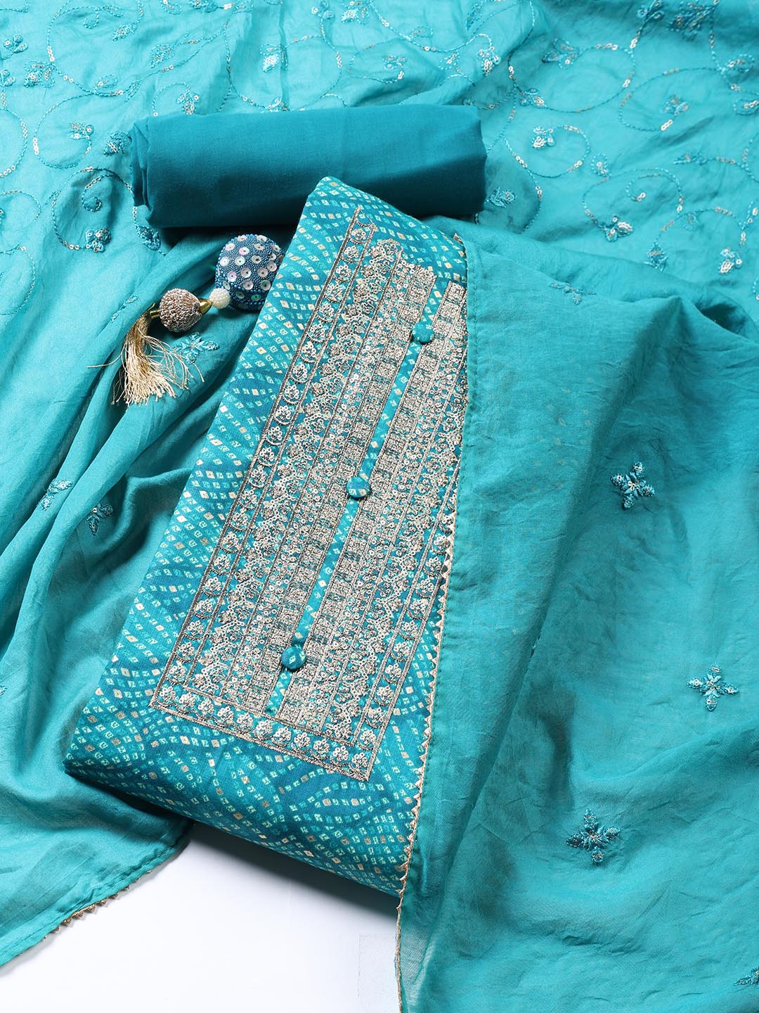Neck Embroidered Cotton Blend Unstitched Suit Piece With Dupatta