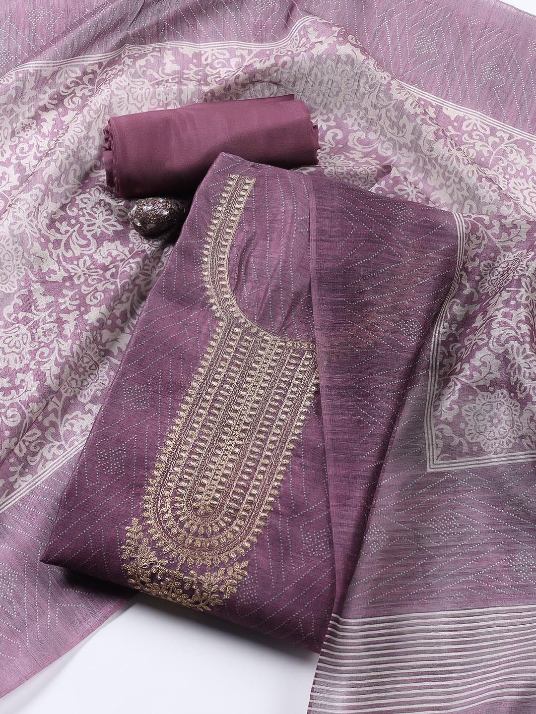 Neck Embroidered Tussar Unstitched Suit Piece With Dupatta