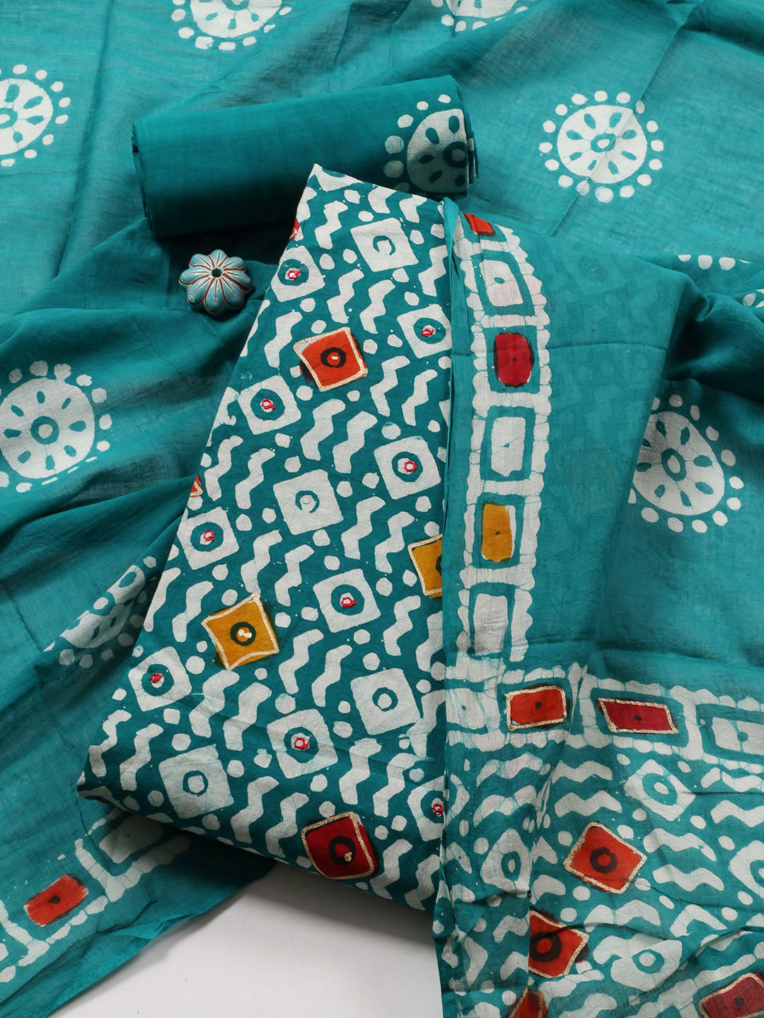 Printed Cotton Blend Unstitched Suit With Dupatta